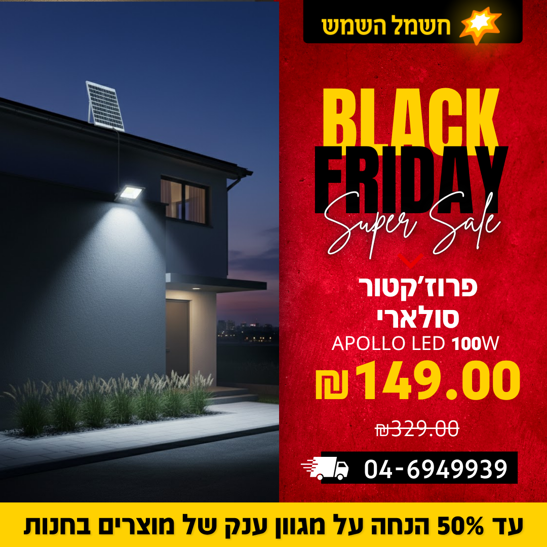 - מידות: 315x265x70 mm (הפנס) | 630x350x20 (הפאנל)